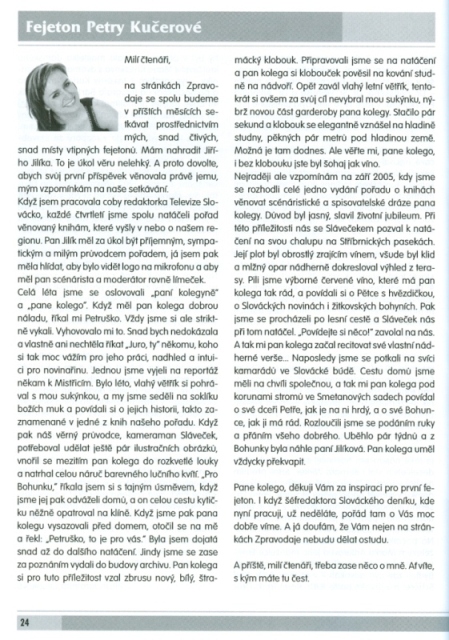 novinářka a moderátorka Petra Kučerová. Prvním fejetonem (lednovým)